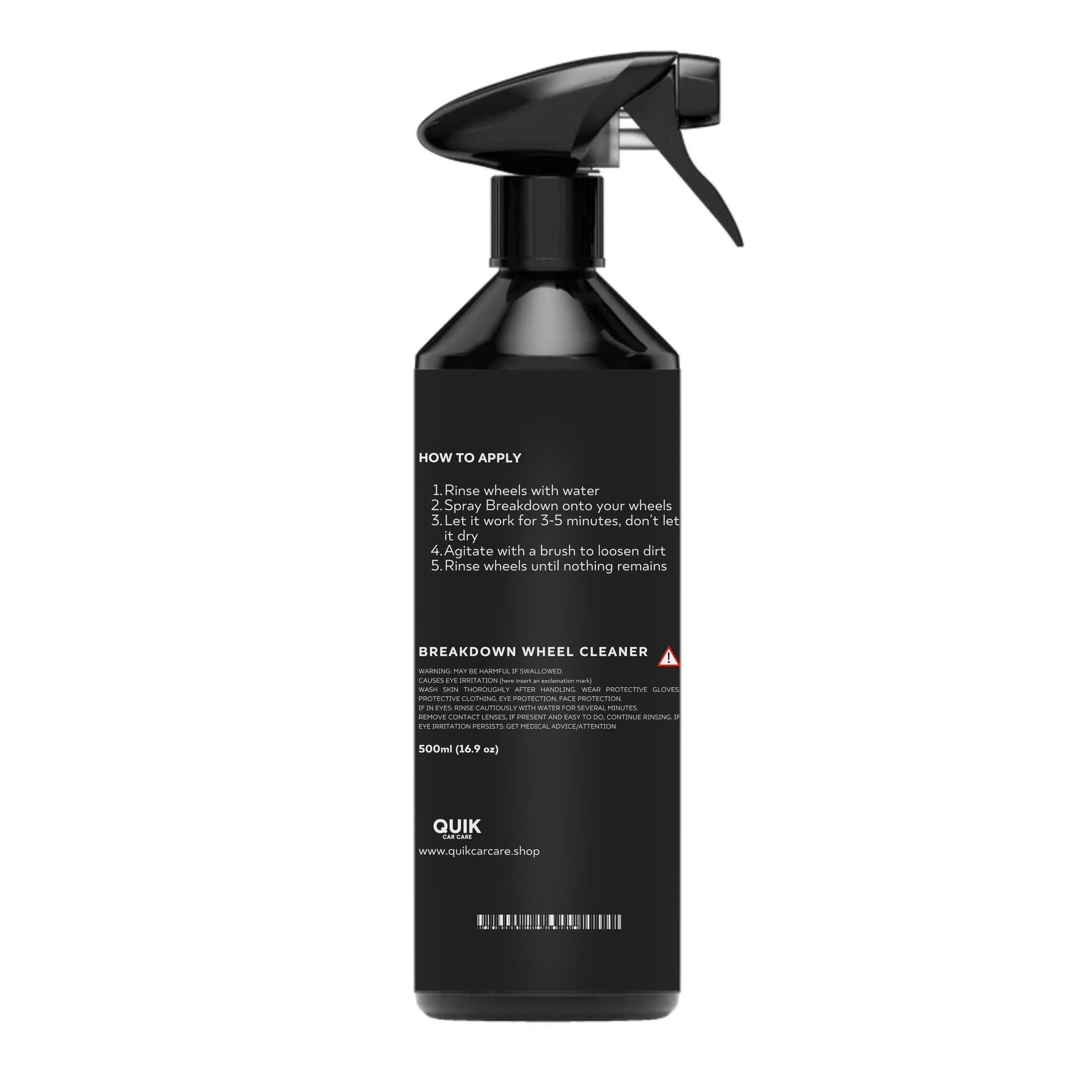 Quik Car Care Breakdown Wheel Cleaner – soluția ta ideală pentru a elimina rapid praful de frână și murdăria. Sigur pentru toate tipurile de jante, pur și simplu pulverizezi, lași să acționeze câteva minute și clătești pentru un finisaj impecabil. Formula puternică este eficientă atunci când este combinată cu apă și șampon sau spumă, asigurând o curățare temeinică și sigură de fiecare dată.
